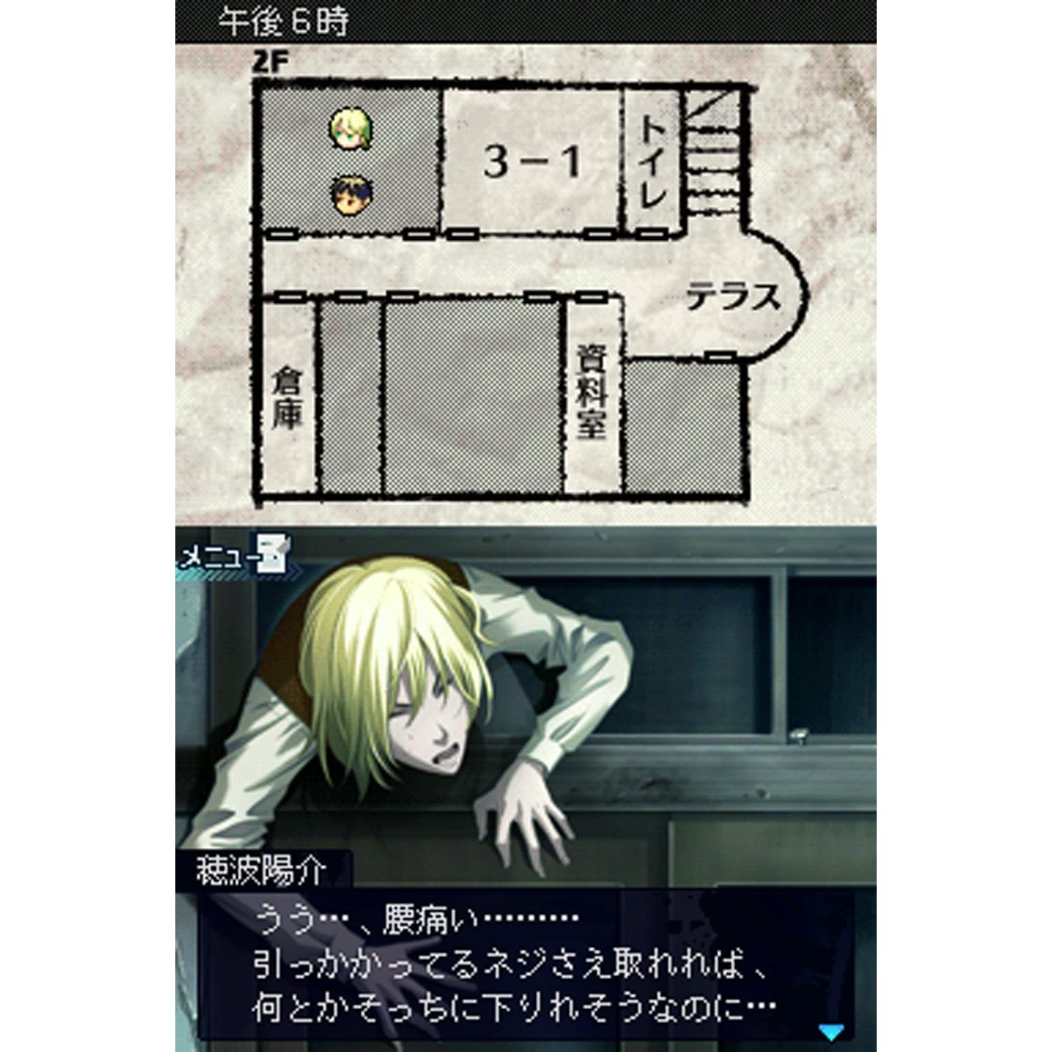 |新品:¥9,700~ 中古:¥2,145~- パートナーの男性キャラクターたちと協力しながら廃校脱出を目指す、女性向けアドベンチャーゲーム。恋愛に重きを置いた乙女ゲームにサバイバル・サスペンスを融合し、死の恐怖が迫る極限状態で生まれる愛が描かれる。廃校脱出のためには殺人鬼が仕掛けたさまざまな謎を解く必要があり、画面をタッチして探索したり、アイテムを手に入れたりしながら物語を進めていくことになる。仕掛けられた謎を突破し、どのような結末を辿るかはプレイヤーの行動次第だ。