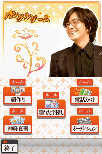 |新品:¥1,144~ 中古:¥390~- 人気ドラマ「冬のソナタ」などで有名な韓流スター、ペ・ヨンジュン氏と一緒に韓国語が学べるソフト。見る、聞く、話すの簡単操作を1日30分行うだけで中級レベルの韓国語をマスターすることができる。韓国国立釜慶大学校の蔡(チェ)教授監修の元、日常会話に特化したプログラムとなっており、前作で好評だったおまけ要素も充実。中級者向けの「デート編」では韓国に旅立ったプレイヤーをペ・ヨンジュン氏が出迎え、あたかもデートしているかのような雰囲気でスタートする。